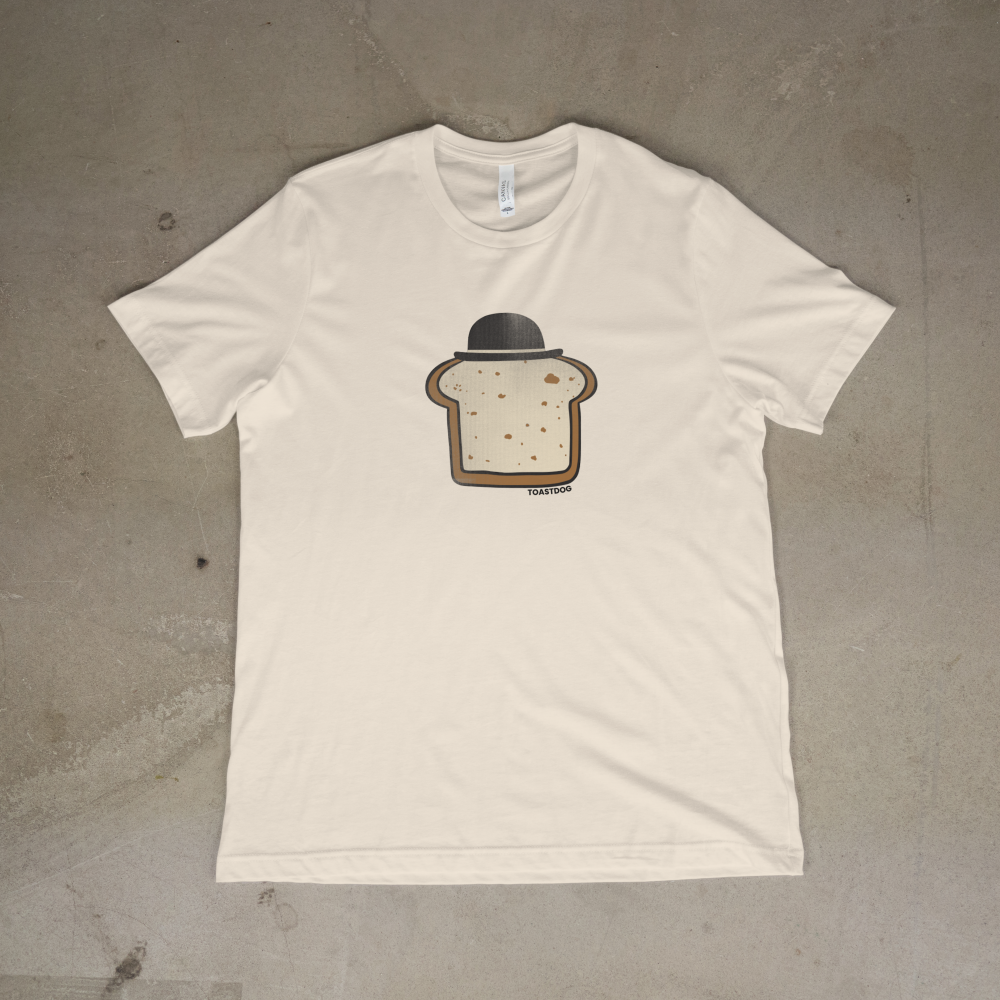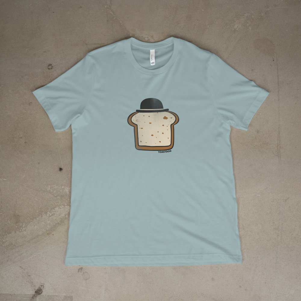 Rocking a classic bowler hat and a sophisticated tan, this dapper toast is ready to cut through the noise of boring fashion. It’s the perfect blend of nostalgic whimsy and utterly unique design that says, “Yes, I know what’s up, and yes, my shirt is a carb.”