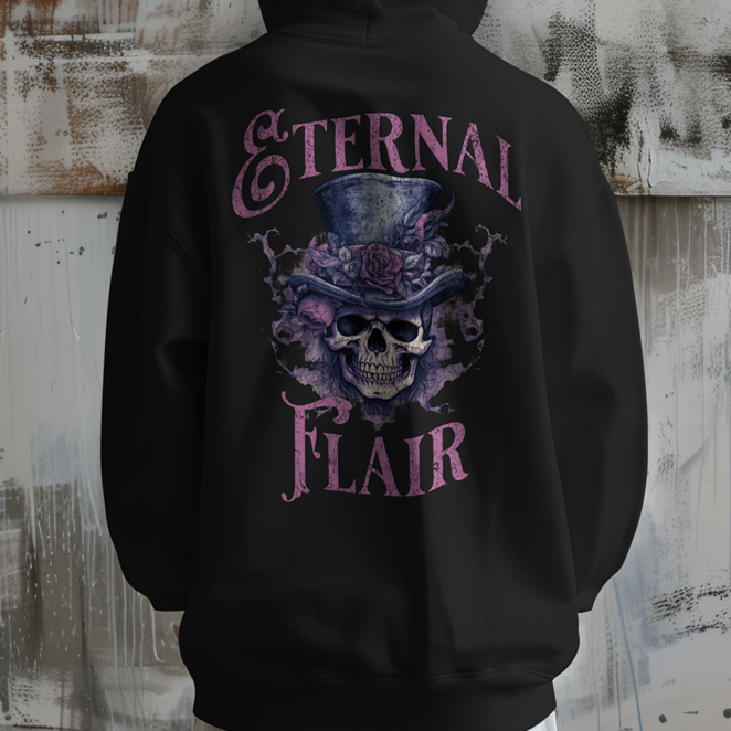 The Eternal Flair hoodie brings together that core alternative aesthetic—mixing rebellion with an unexpected touch of velvet morbidity. It’s for those of us who appreciate high culture and low fidelity.